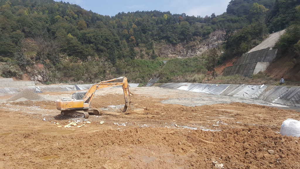原位固化施工完成后庫底的場地平整、導(dǎo)排盲溝開挖及碎石層攤鋪。 此項工序完成后就可以作為填滿場使用了。